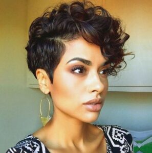 Este corte de cabello es moderno y juvenil: ideal si quieres un gran cambio para tu look. Combina a la perfección el estilo pixie pues tiene los costados de la cabellera bien cortos al raz de la cabeza, mientras que en la parte de arriba tiene el cabello más largo y además agrega una cresta super atractiva en la parte de arriba que cae como un bonito flequillo y mantiene tus rizos divinos ¡Ideal para un nuevo estilo!