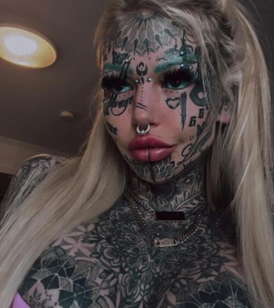 Ella reconoce tener mas de 600 tatuajes que cubren casi el 99 porciento de su cuerpo, por lo que enfrenta una vida diaria llena de desafíos. «Me estoy tatuando mucho, pero no estoy dañando a nadie en el proceso», comentó  en una entrevista, pero reconoce que si bien la gente tiene derecho a opinar, la angustia mucho cuando las personas hacen comentarios desagradables. Sobre todo cuando dicen que ha arruinado su vida y apariencia.