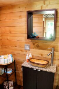 Como toda casa que se precie, también tiene un cómodo baño con ducha y todo lo que se necesita. Con buen gusto, con hermosas tonalidades y mucha armonía, lo hacen realmente bello.