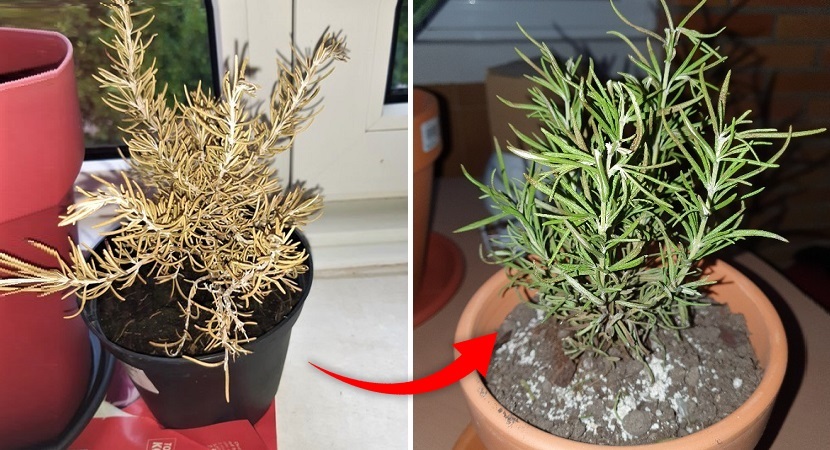 Es una de las plantas que no es amante de mucha agua, es preferible pecar de poca que atiborrarla de líquido. Uno de mis tantos errores fue creer que cuando comienza a secarse desde el tallo es síntoma de escasez de agua por lo tanto ya te imaginarás que la regaba como nunca y como consecuencia perdí mi romero hermoso. También debes tener en cuenta que con mucha humedad generalmente proliferan los tan temidos hongos, observa la humedad del suelo antes de decidir volver a regarla.