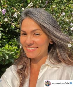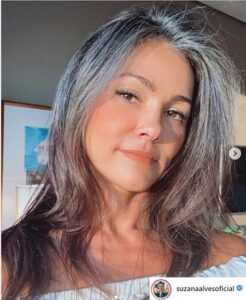 Es muy natural que a partir de de estas primeras apariciones de inmediato comencemos a teñir ese color gris por el que mejor nos haga sentir, pretendiendo en el fondo mitigar el paso de la vida. Pero Suzana, muy por el contrario opto por lo contrario. Tengamos en cuenta, que cada vez es mas frecuente encontrar mas mujeres y hombres que adoptan la misma decisión.