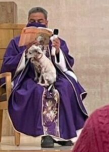 Ahora si analizamos lo que un cura debe de demostrar a todos sus seguidores, podemos darnos cuenta que el amor enaltece cualquier acto a demostrar. Por lo que llevar a este animalito a una misa oficiada por el, donde la mascota solo permaneció sentada en su regazo ¿no es una demostración grande de amor?