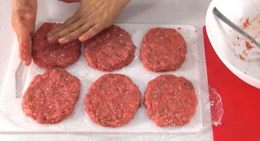 - Coloca cada hamburguesa sobre el papel film y le darás forma.