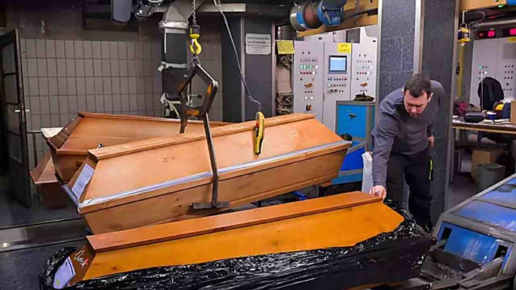 La combustión dentro de la cámara de combustión se produce a una temperatura que oscila entre 850 y 1000 grados. Luego se introduce el ataúd con la salama en la cámara de combustión y ésta se incendia inmediatamente. El cuerpo del difunto debe colocarse en un ataúd inflamable y colocarse en el horno de cremación precalentado . Luego las cenizas y huesos caen a la parte inferior donde se completa la combustión.