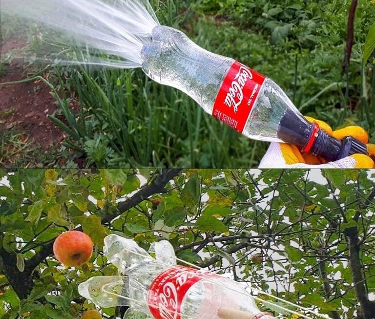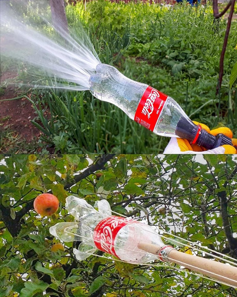 A 0.5-liter Coca-Cola bottle can be transformed into a garden hose nozzle, perfect for gentle watering.