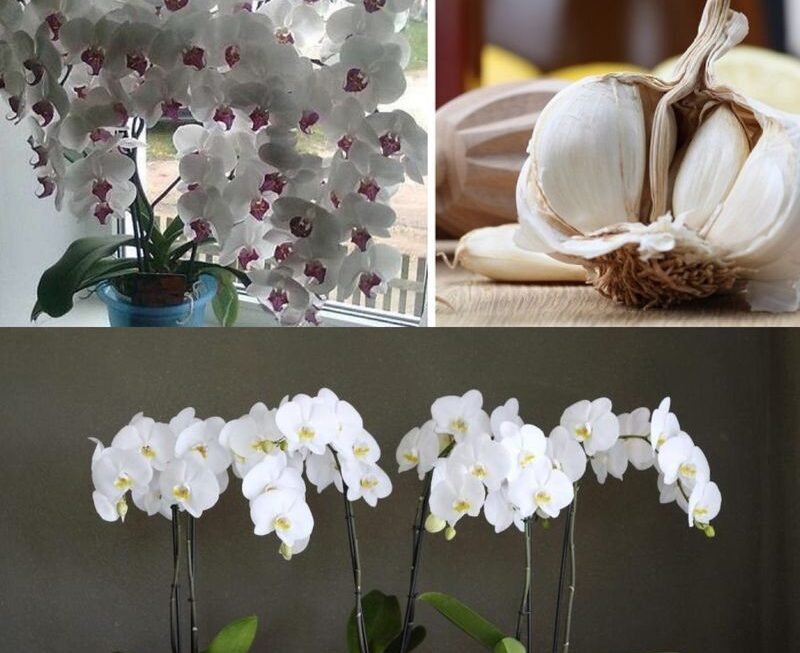 El ajo es un salvavidas para la orquídea. Sólo 3 dientes y al cabo de un tiempo aparecerán los primeros brotes, que serán aún más hermosos