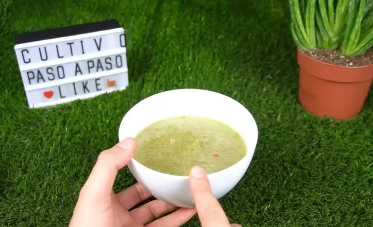 Para obter este fertilizante eficaz, basta colocar duas folhas médias de aloé vera num recipiente sem espinhos e cortá-las em pequenos pedaços. Em seguida, adicione meio litro de água, que deve repousar durante 24 horas antes, para que todo o cloro seja libertado durante este período.
