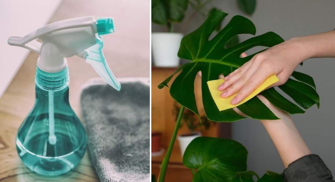 Pulverize a solução no topo das folhas das plantas e limpe com um pano de microfibra. Tenha muito cuidado para não danificar as folhas ou deixá-las cair.