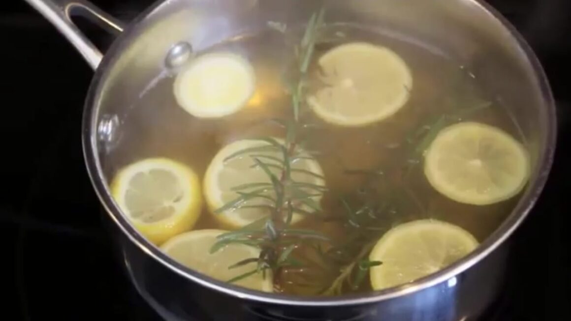 Por isso, é melhor usar aromas naturais, facilmente disponíveis. Embora sejam elementos econômicos, eles são eficazes se tratados da seguinte forma. Primeiro, você precisará de uma panela rasa cheia de água . Leve ao fogo e espere a água ferver. Enquanto isso, corte um limão inteiro. Quando a água levantar fervura, deite o limão cortado juntamente com dois/três raminhos de orégãos .