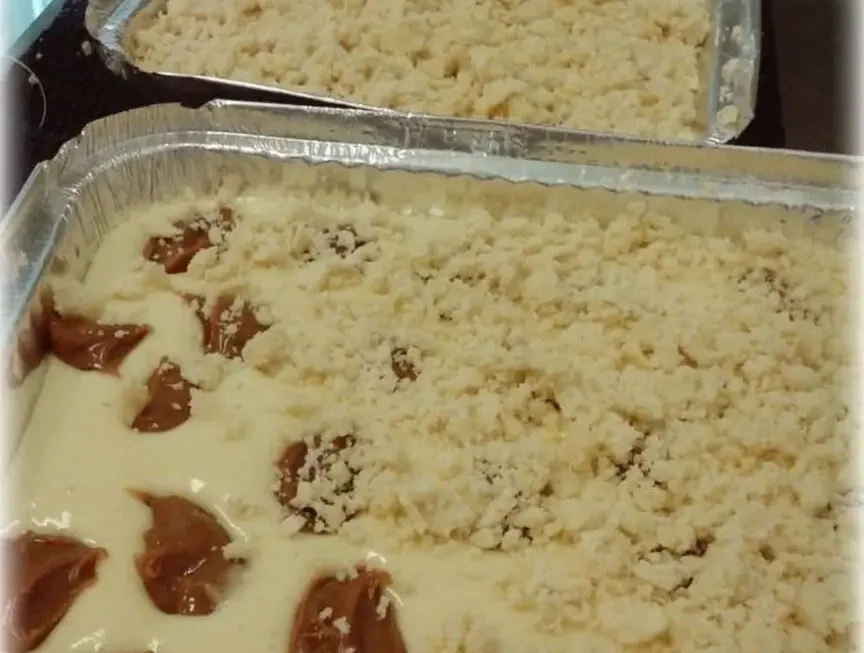15. sobre a massa distribua pequenas colheradas de café de doce de leite uma próxima a outra;