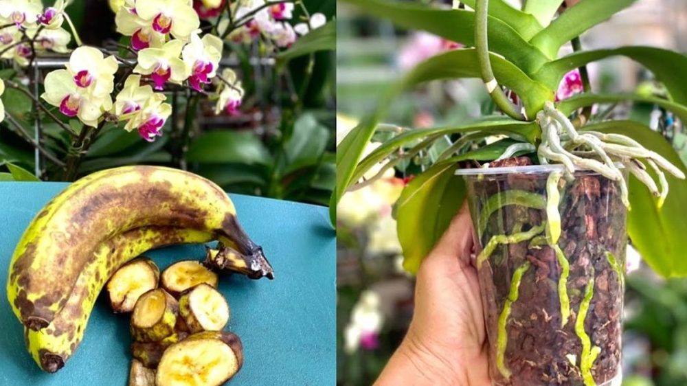 Pegue uma pequena quantidade do líquido do vaso para usar imediatamente para ajudar a orquídea a se recuperar. O restante do líquido deve ser misturado às rodelas de banana com casca, o verdadeiro fertilizante ecológico e natural estará pronto.