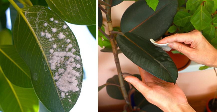 Dieses Insekt wird schnell zu einem Schädling. Wollläuse sind leicht zu finden, da sie sich meist auf Blättern ansammeln. Sie tun dies, um den gesamten Saft der Pflanze aufzusaugen und versuchen, sie vollständig trocken zu lassen.
