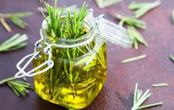 Geben Sie 3 Esslöffel getrockneten Rosmarin in einen Topf mit Wasser und bringen Sie ihn zum Kochen.