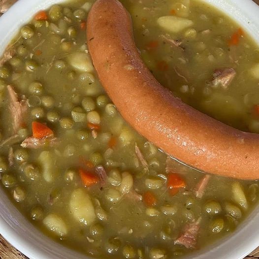 - Serviere die Erbsensuppe heiß, eventuell mit einem Klecks saurer Sahne oder Croutons als Garnitur.
