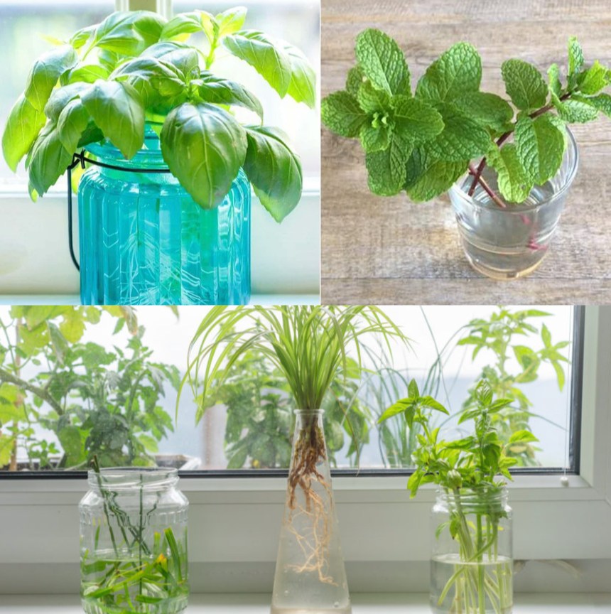 Basilikum: Basilikum wächst auch gut im Wasser. Schneiden Sie die Stängel ab, bevor sie blühen, und legen Sie sie an einen hellen Ort.