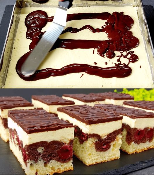Dann Die Schokolade im Wasserbad zum Schmelzen bringen und das Sonnenblumenöl unterrühren und über die Vanillecreme verteilen und die Backform hin- und herschwenken.