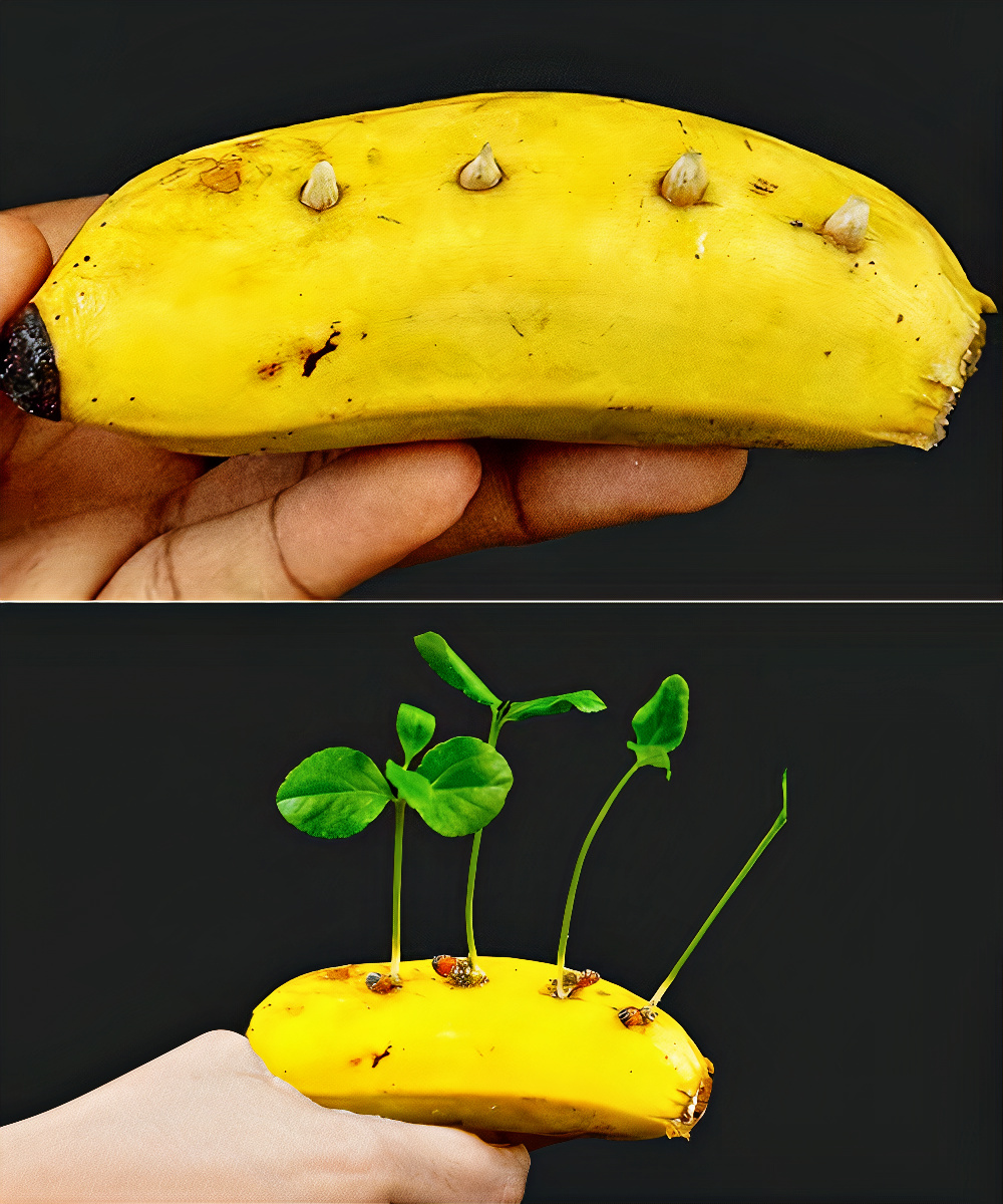 Deshalb sollten Sie ein Loch in eine Banane stechen und Zitronenkerne hineingeben. Was für ein tolles Produkt! Sie werden nicht glauben, dass Sie die Zitronenpflanze auf diese Weise anbauen können.