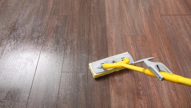 Der erste Schritt ist die tägliche Reinigung der Böden, um zu verhindern, dass sich Staub und Schmutz ansammeln. Sie können ein Mikrofasertuch, das den Staub aufnimmt und nicht verdrängt, oder einen Besen mit weichen Borsten verwenden.