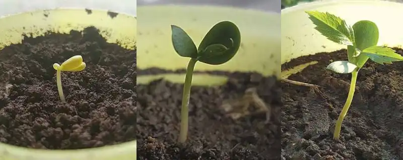 Wählen Sie dazu einen Topf mit Erde mit neutralem pH-Wert. Graben Sie ein Loch in die Erde, das etwas größer ist als die Größe Ihres Samens. Da der junge Spross noch zerbrechlich ist, sollten Sie vorsichtig sein, wenn Sie den gekeimten Samen in das Loch legen. Der Spross sollte nach unten zeigen.