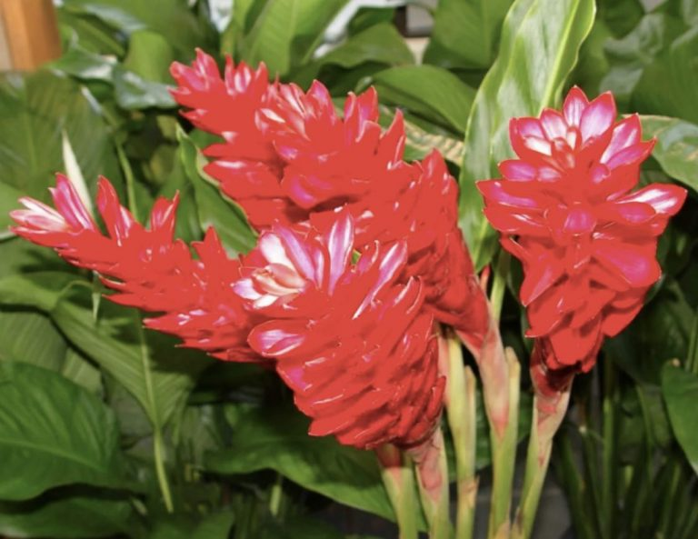 Zusätzlich zu seinen wohltuenden Eigenschaften ist Ingwer für seine Schönheit bekannt. Im Herbst erscheinen an erwachsenen Pflanzen große rote Knospen, die aromatischen Saft mit antiseptischen Eigenschaften freisetzen.