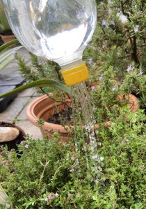 Der preisgekrönte Gartendesigner Joe Perkins sagt, dass selbstgemachte Gießkannen perfekt für kleine Töpfe und Zimmerpflanzen sind. „Zuerst bohren Sie mit einem kleinen Bohrer ein Loch in den Verschluss einer großen Plastikflasche. Stellen Sie sicher, dass Sie die Kappe mit einer Werkbank oder ähnlichem abstützen. Das ist es! „Sie haben eine sehr nützliche Gießkanne mit feinem Sprühnebel“, rät er.