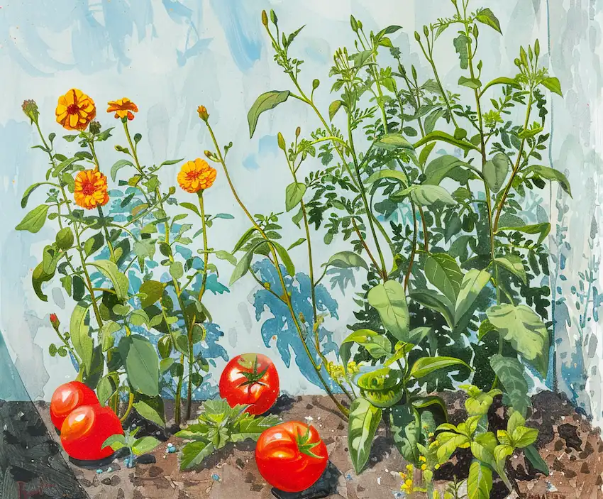 - Tomaten : Basilikum, Ringelblume, Karotten, Knoblauch