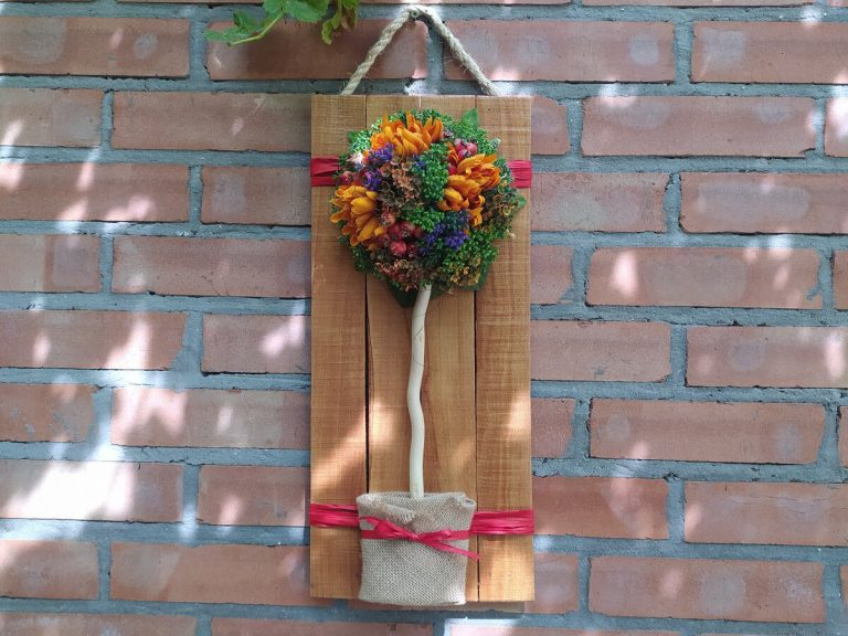 Diese Dekoration steht jetzt draußen unter einem Baldachin, umgeben von Weintrauben. Ich bewahre darin diverse Kleinigkeiten auf, die ich griffbereit benötige, und freue mich, dass wir solche Dinge gemeinsam schaffen.