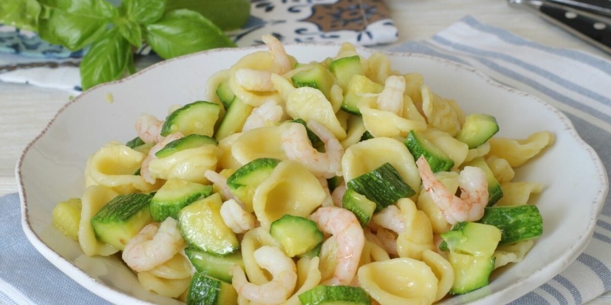 Nudelsalat mit Zucchini und Garnelen – einfache Essensidee