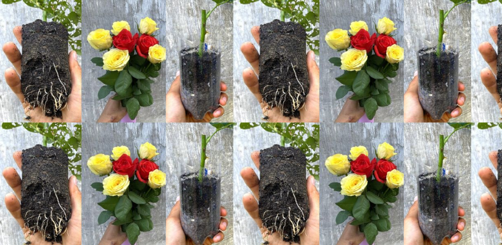 4. Befeuchten Sie die Erdoberfläche und wickeln Sie sie in einen Beutel.