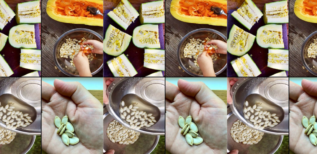 Es gibt zwei Methoden zum Reinigen von Zucchinisamen. Bei der ersten Methode werden sie ein bis zwei Tage lang in einer Schüssel mit Wasser fermentiert, anschließend unter fließendem Wasser abgespült und getrocknet. Alternativ können Sie die Samen in Wasser abspülen, schwenken, 5–10 Minuten ruhen lassen und sie dann durch ein feinmaschiges Sieb abseihen.