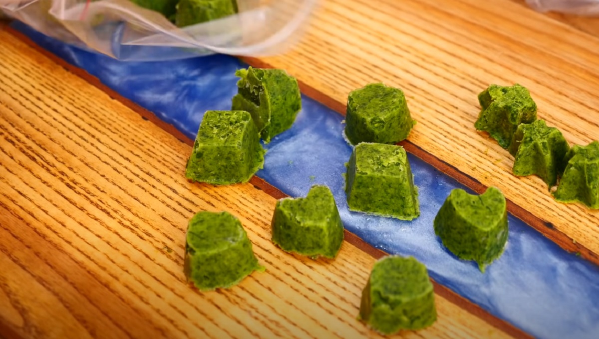 4.Transferați pasta în forme pentru gheață sau forme mici de silicon. Acoperiți formele cu folie alimentară și dați-le la congelator. Lăsați pasta să înghețe.