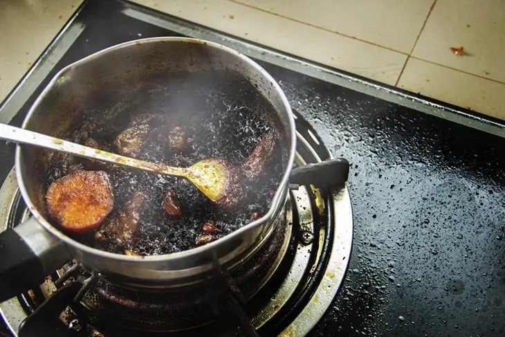 • Kochen Sie zunächst etwas Wasser und geben Sie etwas Spülmittel hinzu.