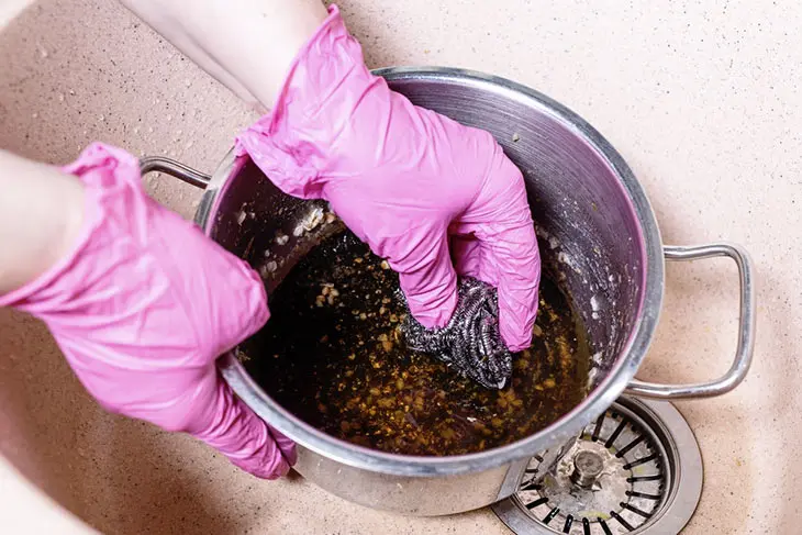 2. Reinigen Sie die angebrannte Pfanne von außen