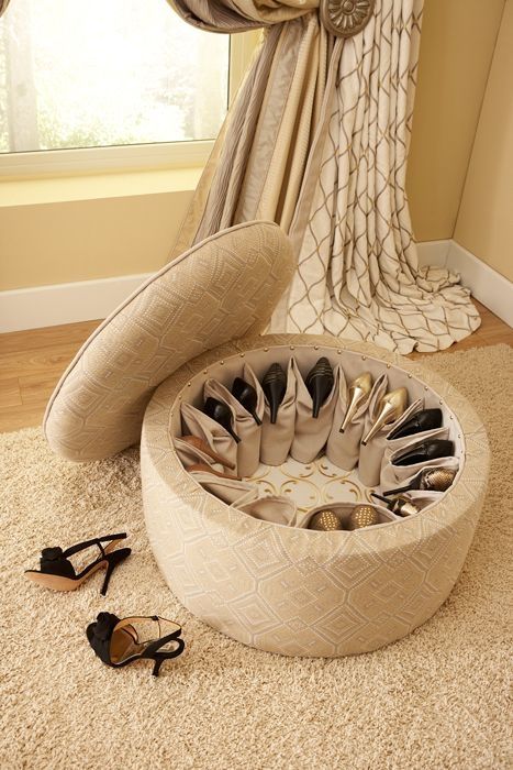 Auf die gleiche Weise können Sie auch zusätzlichen Platz in Ihrem Wohnzimmer schaffen. So können Sie zum Beispiel eine einfache Ottomane in einen Behälter verwandeln, in den Sie alles hineinlegen können, was Sie wollen.