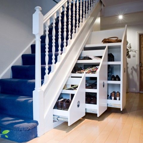 Wenn sich in Ihrem Flur eine Treppe befindet, können Sie den Keller nutzen, um ihn in ein Schuhregal oder sogar einen Kleiderschrank zu verwandeln. Das Ergebnis wird wirklich wow sein!