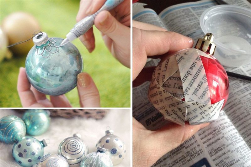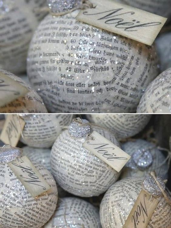 Natürlich können Sie auch das Papier aus einer alten Zeitung oder einem alten Buch recyceln, um eine ruinierte Weihnachtskugel abzudecken.
