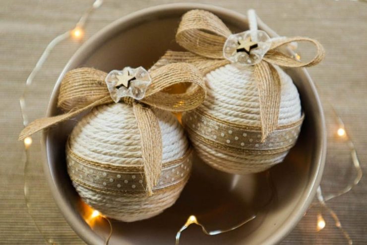 Natürlich dürfen Sie nicht vergessen, Styroporkugeln zu verwenden und diese mit dem Material Ihrer Wahl zu bedecken, um Ihren Baum mit der Kunst des Heimwerkens zu schmücken. Sie können sich auch dafür entscheiden, die Styroporkugel mit Schnur und Stoffbändern auszukleiden. Es wird super lecker sein.