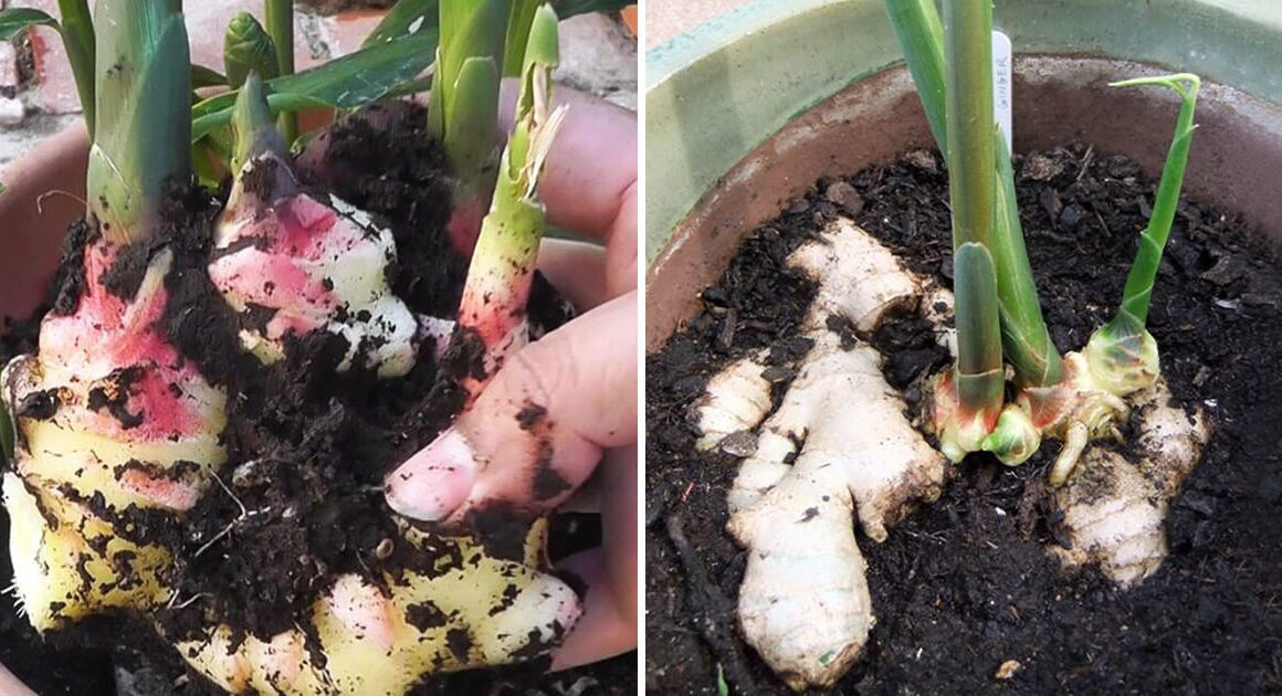 Gießen Sie zum Schluss die Erde ein wenig, ohne die Sprossen zu benetzen. Der Ingwer braucht 3-4 Monate, um zu wachsen und erntereif zu sein.