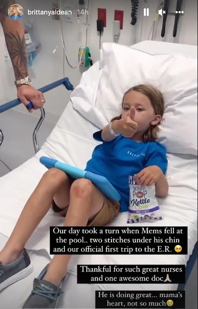 Brittany Aldean’s Instagram story was updated: “Our day took a flip when Mems fell at the pool.. two stitches less than his chin and our official first excursion to the E.R. Thank you for offering such excellent nurses and one particular outstanding health practitioner. He’s accomplishing fantastically very well, but Mama’s heart isn’t.”