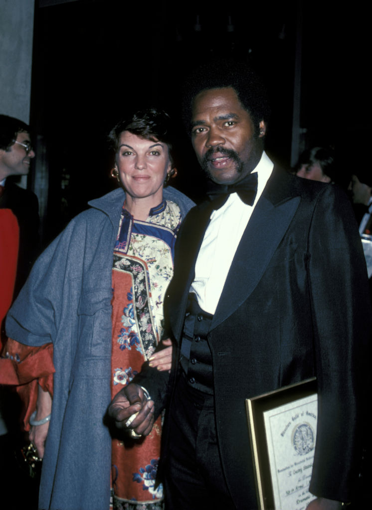 circa 1975: American actor Tyne Daly and her spouse, Cuban-born actor George Stanford Brown, show up at a functionality of the British Countrywide Theatre, London, England. Brown holds a compact cigar in just one hand. (Photograph by Fotos Worldwide/Getty Images)