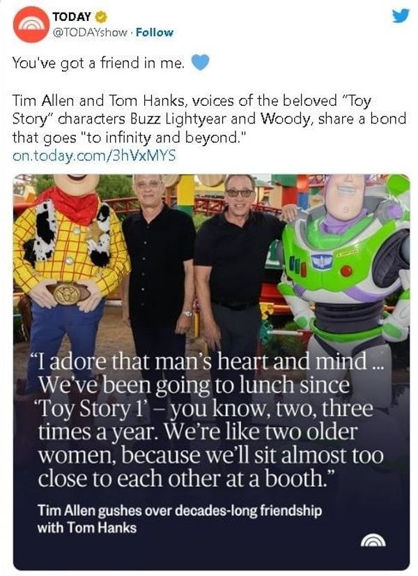 “We’ve been going to lunch twice a year since Toy Story 1, and we’re like two older women because we sit almost too close at a booth,” Allen says, endearingly and with a hint of humor. Indeed, Allen tells a funny story about how, during “Toy Story 1,” Hanks tucked fries from his plate with a casual demeanor. Allen was deeply touched by this modest show of friendship, as he had not encountered such kindness during his childhood.