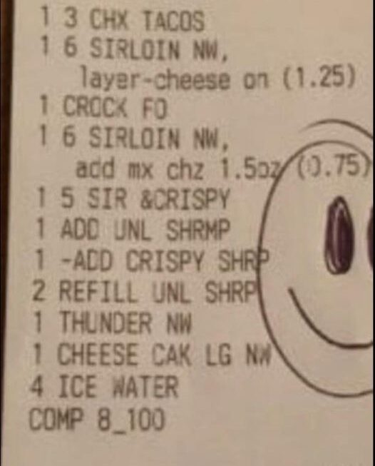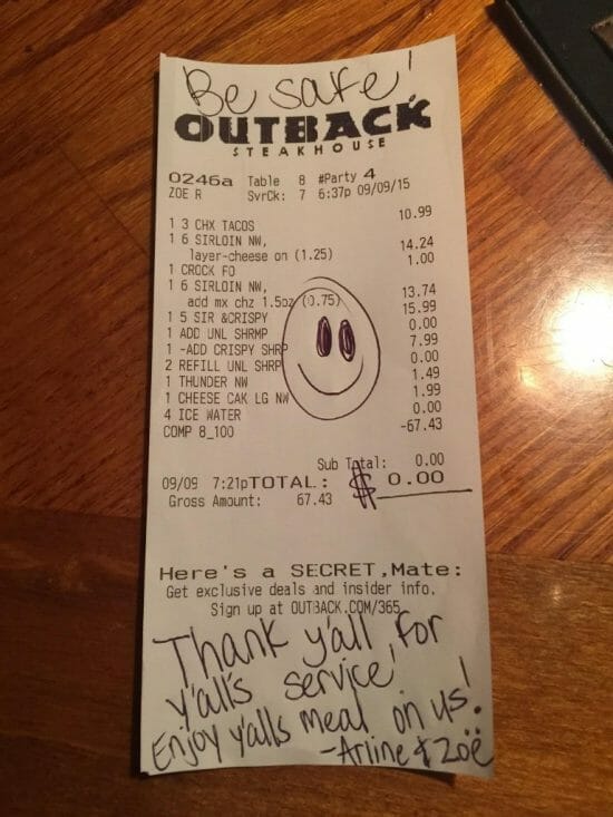 Later, the Slidell Police Department wanted to pay tribute to the two Outback Steakhouse employees and posted an image of the receipt to their Facebook page.
