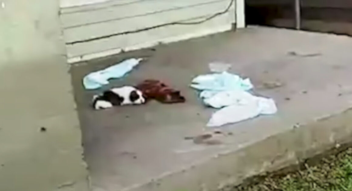 A tiny puppy was found lying on a random porch of an abandoned house, and a rescuer approached. She asked and looked around for a mother, but he was all alone. The little one was injured, so she scooped him up to get him to the vet immediately.