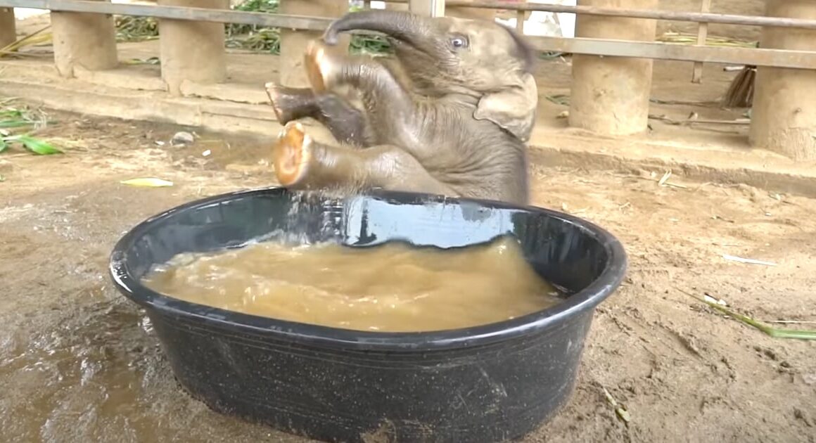 In the video below, watch as baby elephant Chaba hits up the tub for her first bath ever. And in childlike fashion, there’s some goofing around and extracurricular activities, and it’s not always smooth sailing! Too cute and funny. π