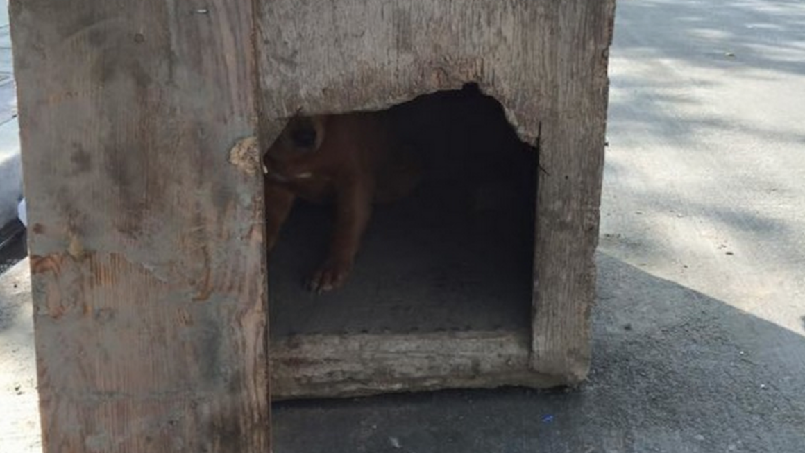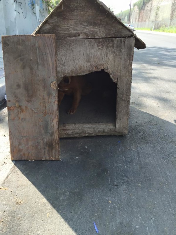 This story takes us back a couple years ago to when a man in southern Los Angeles found a doghouse in the left lane of traffic that was nailed shut with a board over the opening. He contacted the police, and they pried the board from the doghouse. There was a wounded dog inside which prompted them to call Ghetto Rescue Ffoundation.