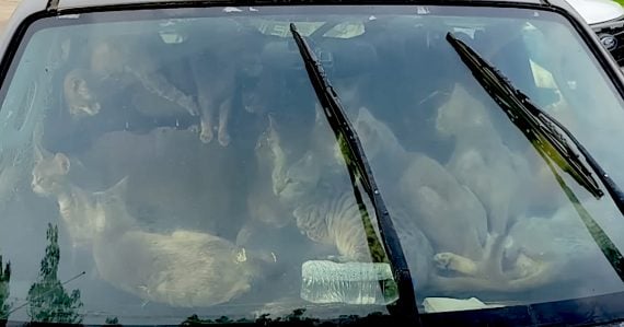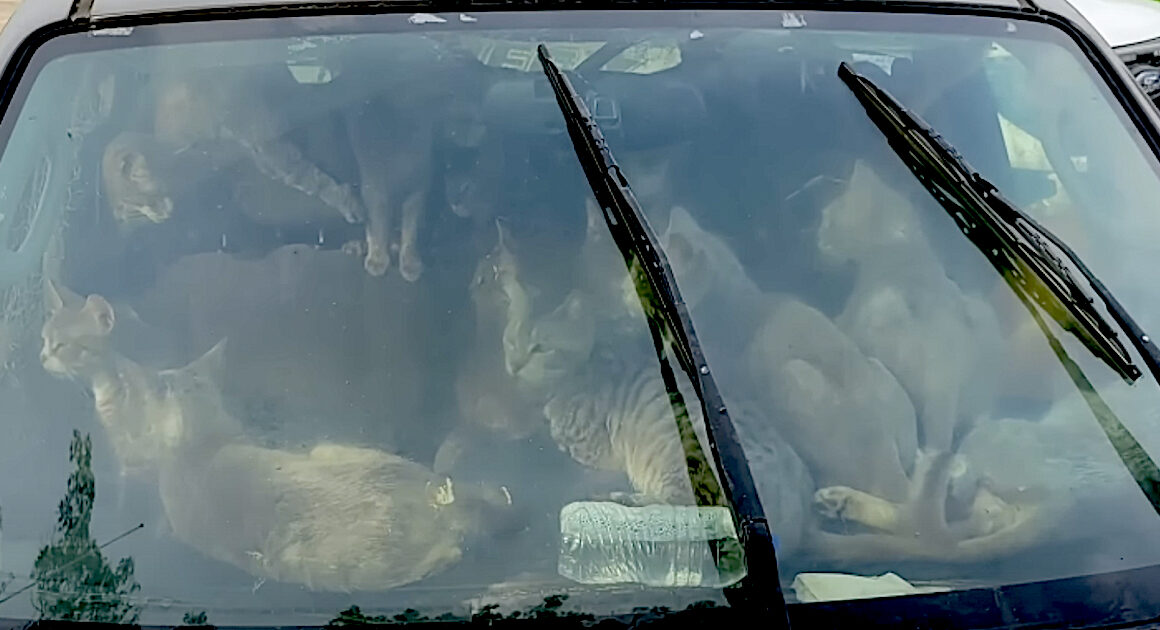 On a day with a heat advisory in effect, 47 cats were found locked inside of a car. A stranger saw the shocking display at a rest stop and contacted authorities. They learned that the owner of the cats had been living inside the vehicle with them for some time, and this person was cooperative in handing them over to investigators.