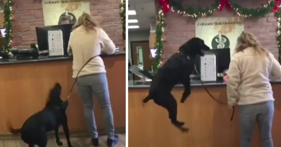 In the waiting room of one Colorado vet clinic, a bit of an unusual scene took place as a dog jumped with excitement at the thought of going to see his vet! Normally, dogs do not like going to the vet (who among us likes going to see the doctor?), but Endo couldn’t contain himself at the receptionist’s desk! π