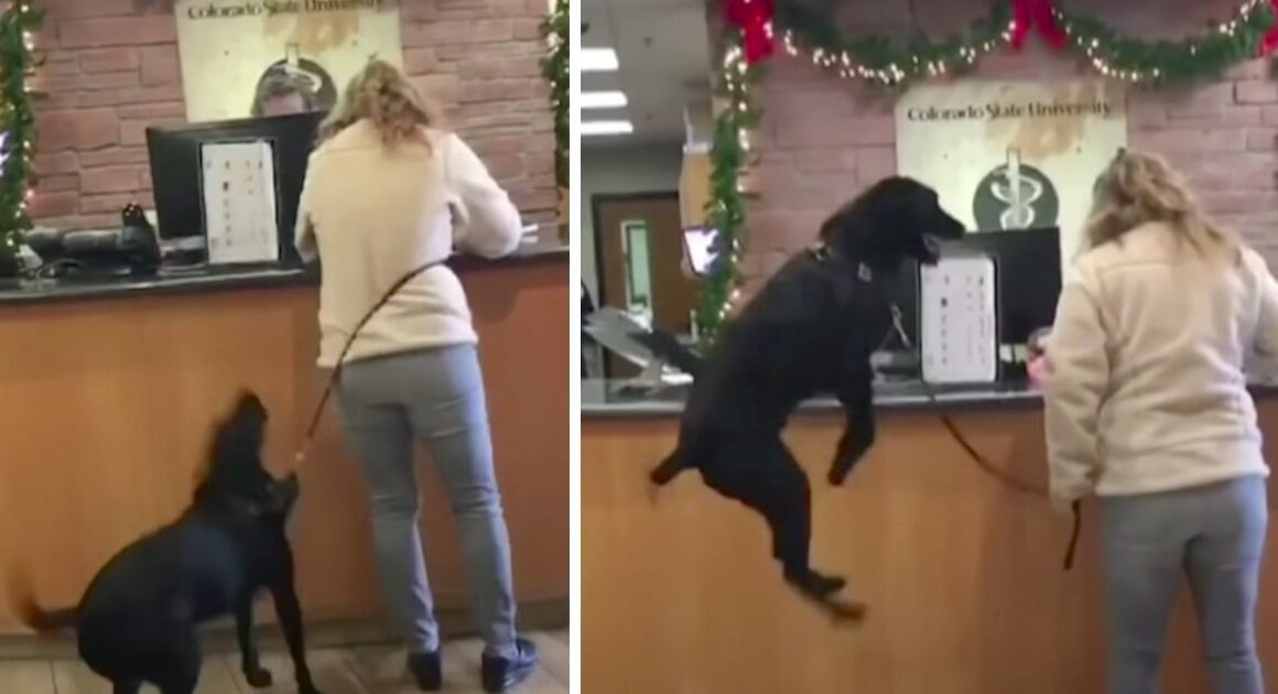 In the waiting room of one Colorado vet clinic, a bit of an unusual scene took place as a dog jumped with excitement at the thought of going to see his vet! Normally, dogs do not like going to the vet (who among us likes going to see the doctor?), but Endo couldn’t contain himself at the receptionist’s desk! π