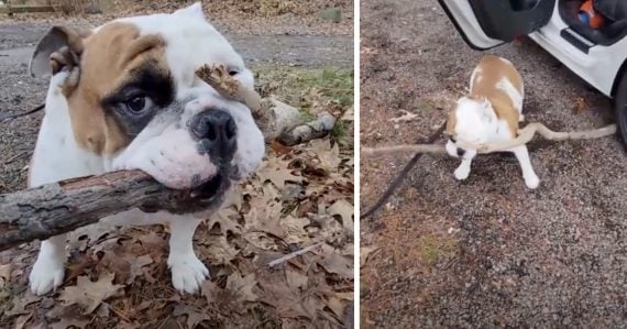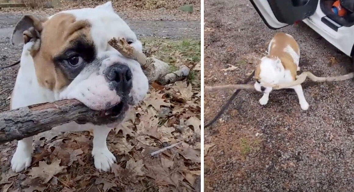 Dog Finds A Prize Of A Stick And Works To Bring It Back Home