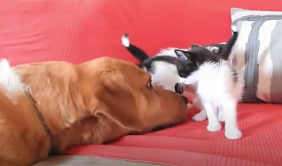 While out on a walk, a dog named Aragon found a box of abandoned kittens along the side of the road. Little did he know when he stepped out of the house earlier that day that he was about to become the best foster dad!